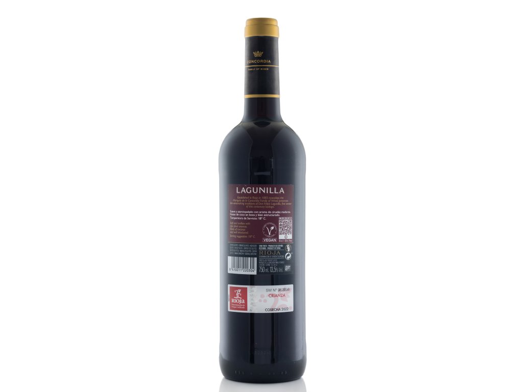 Toto víno Lagunilla Crianza Rioja je klasické, harmonické červené víno s chráněným označením původu D.O.Ca. Rioja ze Španělska. Jeho charakter je výsledkem pečlivého spojení zralého ovoce a nezbytného zrání po dobu minimálně 12 měsíců v dubových sudech a dalších 12 měsíců v lahvi.